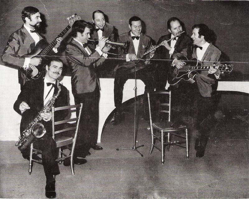 premier rang : Fernand ANDREOLI, sax ténor et chef d’orchestre. Au