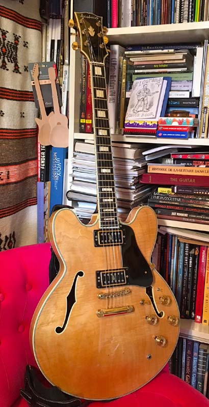 les ouïes, ainsi qu'une jonction à la frette 19. Le manche est