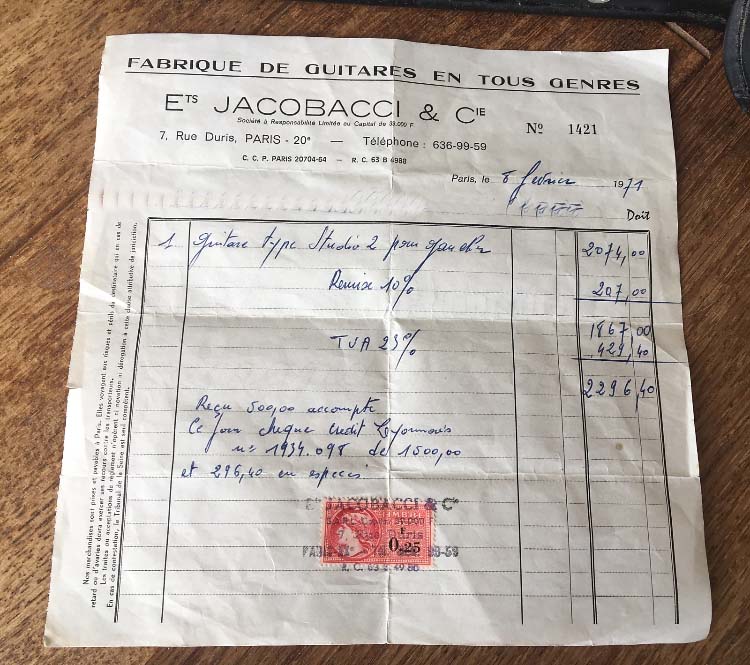 facture d’origine datée du 8 février 1971