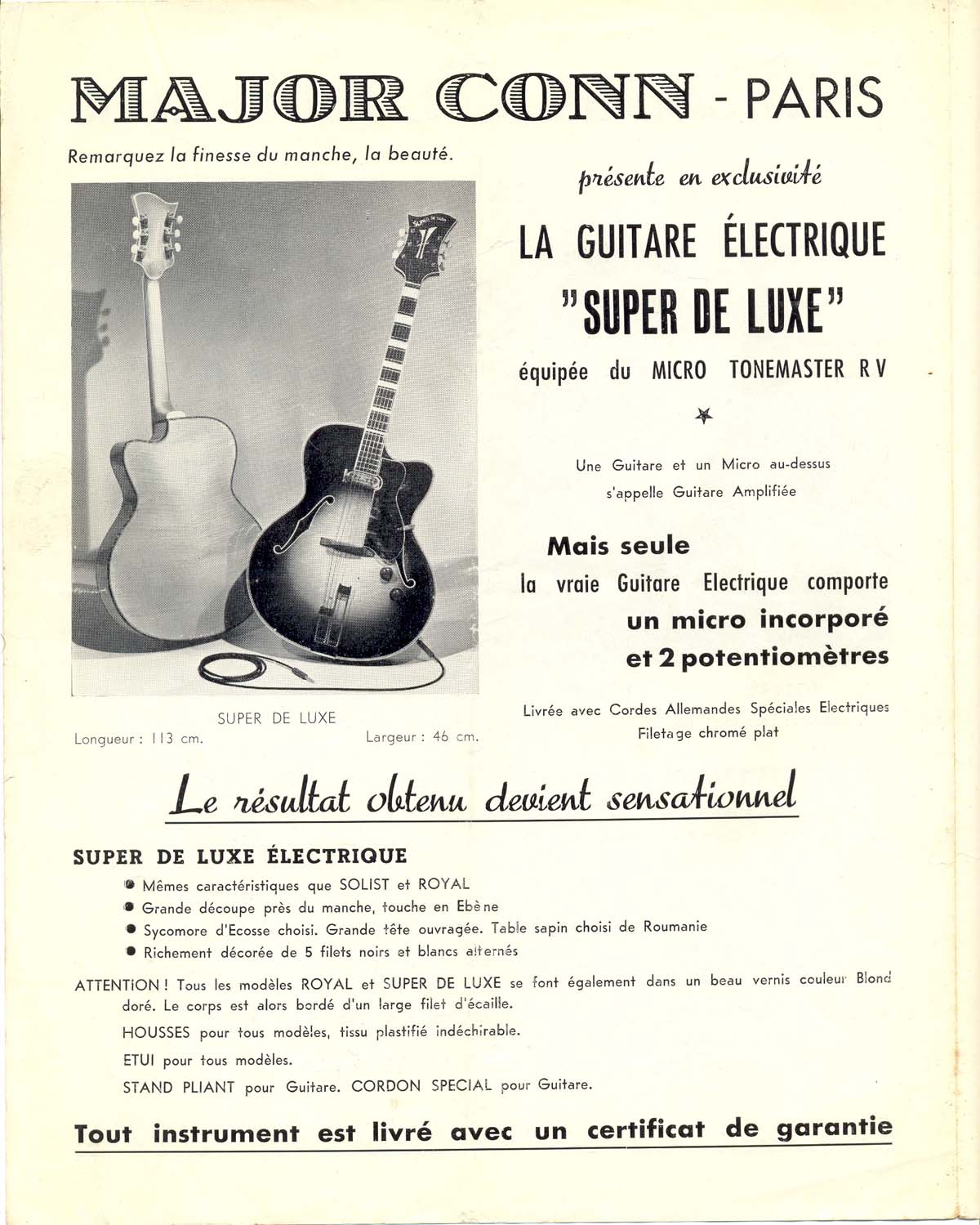 Super de Luxe vers 1956 manche érable placage de tête ébène mécaniques SB