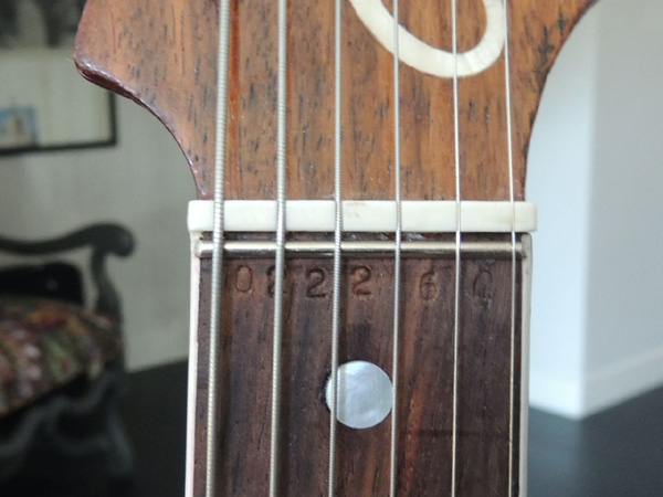 pickguard et l'inscription "breveté SGDG" située sur l'arrière
