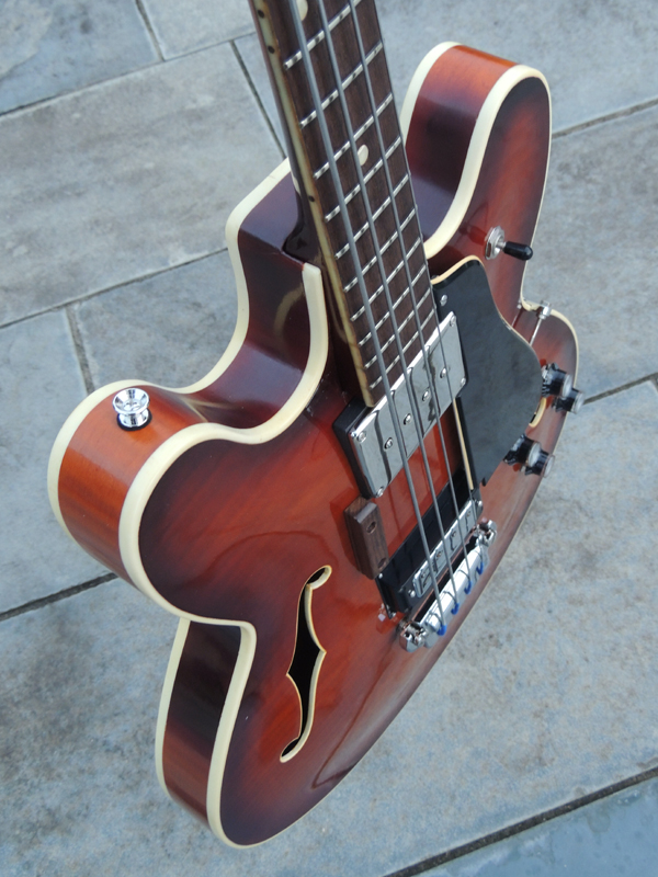 manche érable 3 pièces touche palissandre frette zéro 21 cases table, éclisses et fond érable accastillage Gibson EB2 D (2 micros) numéro de série : **0267