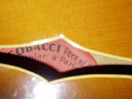 Etiquette orange ovale (orange oval label): JACOBACCI Père et Fils Luthier à Paris - Type SACHA DISTEL - N° 04 **68 - "ROGANDS" Guitares