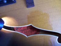 la date de sortie de l'atelier) sur une guitare portant le logo
