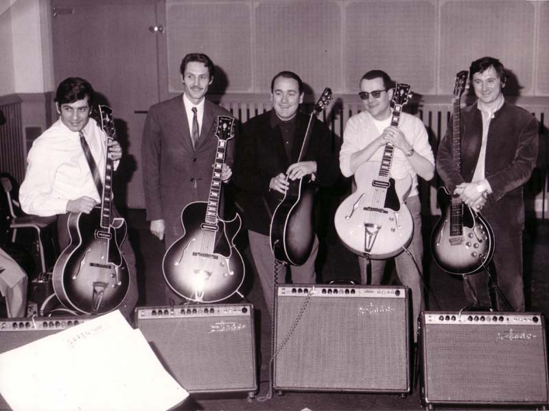 Des Guitars Unlimited visiblement enchantés de leurs guitares Jacobacci (Raymond Gimenes, Francis Le Maguer et Pierre Cullaz) et de leurs amplis Shade