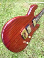 guitare est creusée pour le ventre et en biais sur le bord façon Strat.