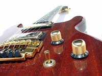 puis à nouveau Strato, Gibson Les Paul Gold Top De Luxe puis SG, Vox