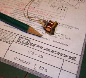 En ce qui concerne la rénovation il a fallu rembobiner quelques têtes hors d’usage après de longues années de bons et loyaux services. Merci à Bobby (f.staedel@t-online.de) spécialiste allemand du matériel vintage, qui a effectué ce travail de précision avec le talent d’un vrai passionné et à un prix raisonnable (site : http://www.bobbysreparaturen.de) . En France, avec ce type de matériel, on passe pour un martien! Pour l’anecdote, un magasin spécialisé de Pigalle m’a déclaré ne pas pouvoir réparer les chambres d’échos car la présence de haut-parleurs dans leur atelier démagnétisait les têtes de lecture !