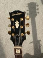 Etiquette orange ovale (orange oval label): JACOBACCI Père et Fils Luthier à Paris - Type effacé - N° effacé - "ROGANDS" Guitares
