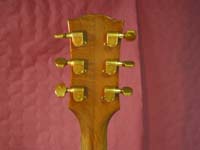 Notez la forme inhabituelle du cache de la barre de renfort, qui recouvre l'emplacement initial du sillet (la frette zéro a été supprimée et le sillet déplacé)