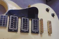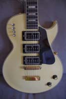 "Cette guitare avait été faite sur commande en blanc car c’était la couleur et tenue de scène du groupe ..." La guitare a été refrettée par Fréderic Mai