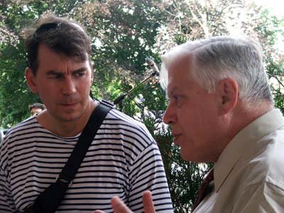 et Pierre-Marie Meekel lui expliquant qu'à cet emplacement se trouvait