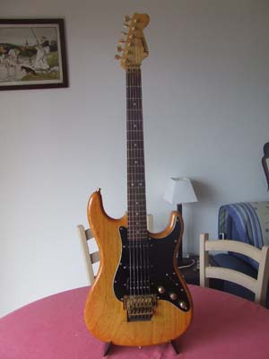 Guitare Jacobacci strat, de 1991. Réalisée par le luthier avec des