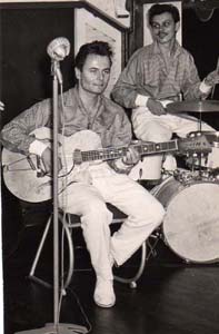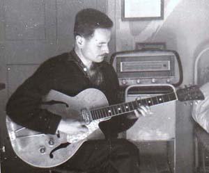 Tony Romain, Abidjan, 1955. La guitare est équipée d'un micro Stimer S51. |