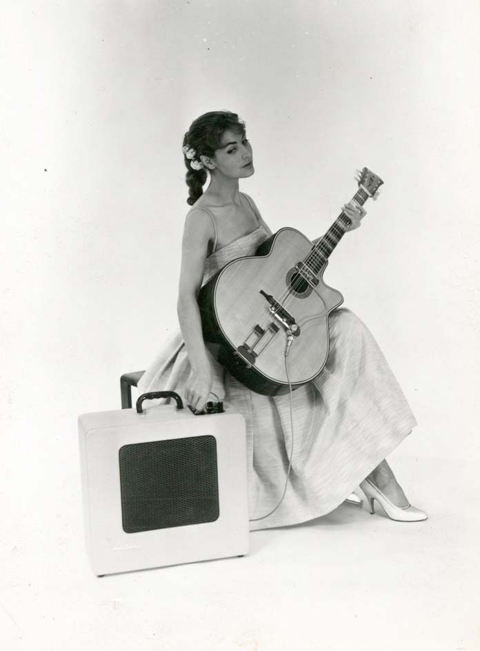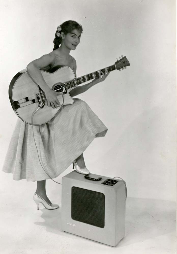 Guitare JIM et amplificateur Stimer Nuance. Il s'agit de clichés publicitaires pris pour la couverture de