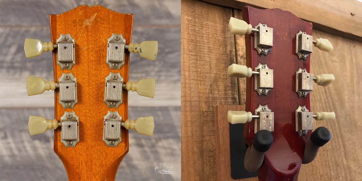 droite : mécaniques Kluson Deluxe « single line » jusqu’en