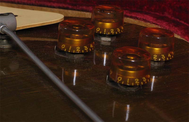 pas de liseré. Le logo Gibson est en nacre. Le cache du