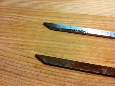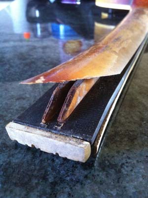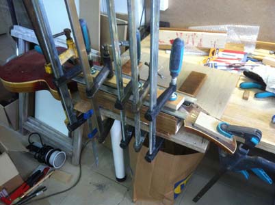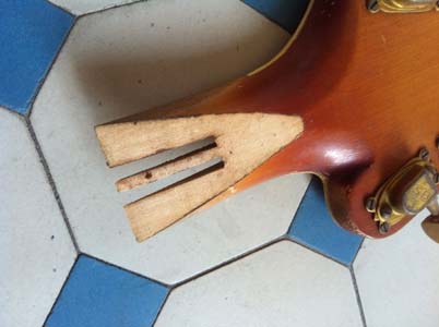 d’origine : les éclisses, nettoyées, le placage de tête,