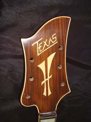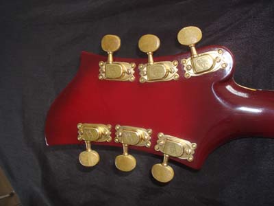 (photo de dessus). Cette guitare, qui porte un logo script