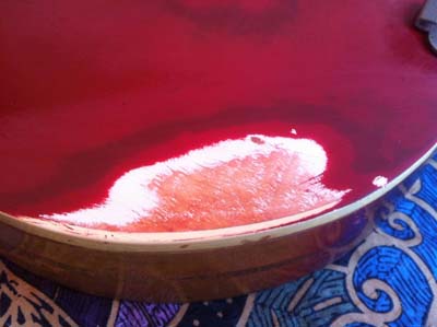 décollée à sa jonction avec le manche. La touche, déjà