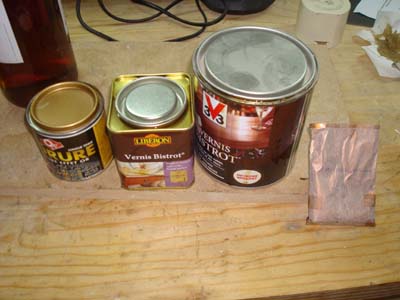 de peinture dorée, “vernis bistrot” incolore et chêne doré,