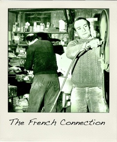 Sur l’excellent site Di Mauro, cette photo d’Antoine Di Mauro, Carmelo Catania et Vincenzo Jacobacci prise devant le domaine Pommery à Reims en 1950. La voiture est un très beau cabriolet Matford 82A.