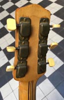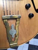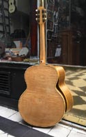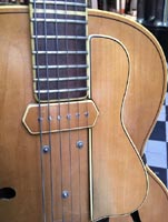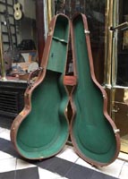 François Charle : "La guitare a été achetée en Suisse, chez Stambac à Genève, pendant la guerre. Elle a un peu voyagé ensuite, avant de se fixer en France. Elle vient dans son étui d'époque dont une petite plaque indique une origine espagnole" |
