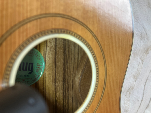 rosace : anneau en celluloïd dans l'ouïe et incrustations en